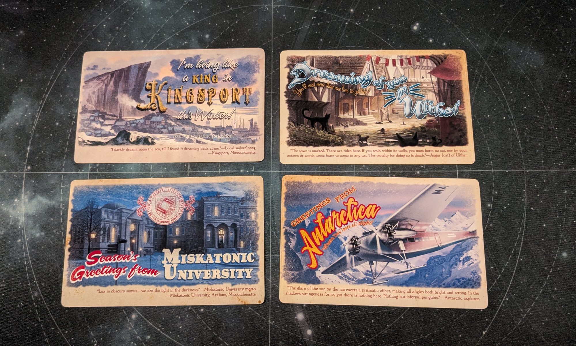 Printed the postcards from Arkhamhorror.com with the idea to create further cards for other notable locations.
