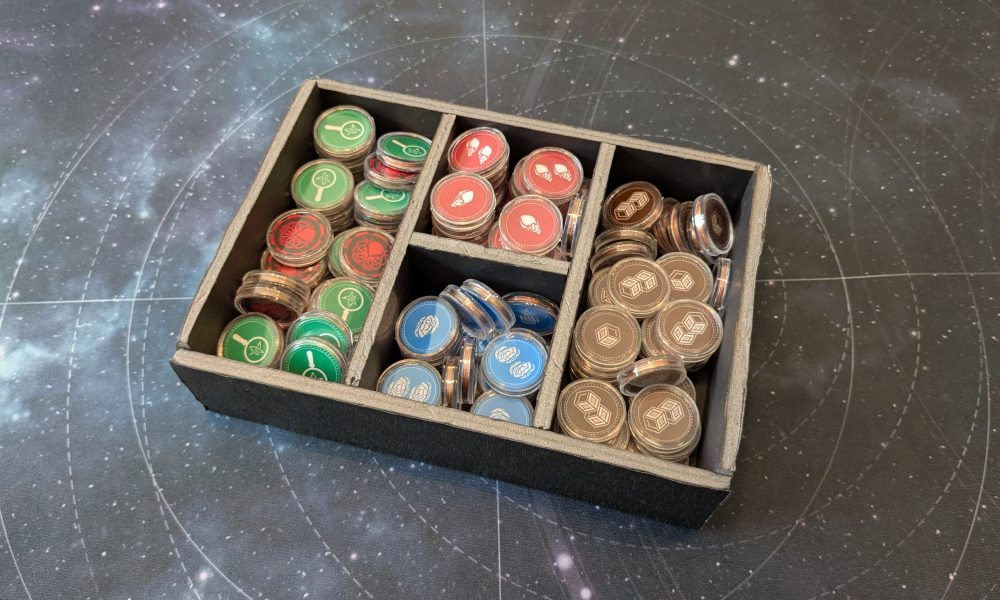 I made quite a lot of these foam core boxes for all kind of tokens, e.g. sorting of investigator tokens, organizing campaign specific tokens or my token bank