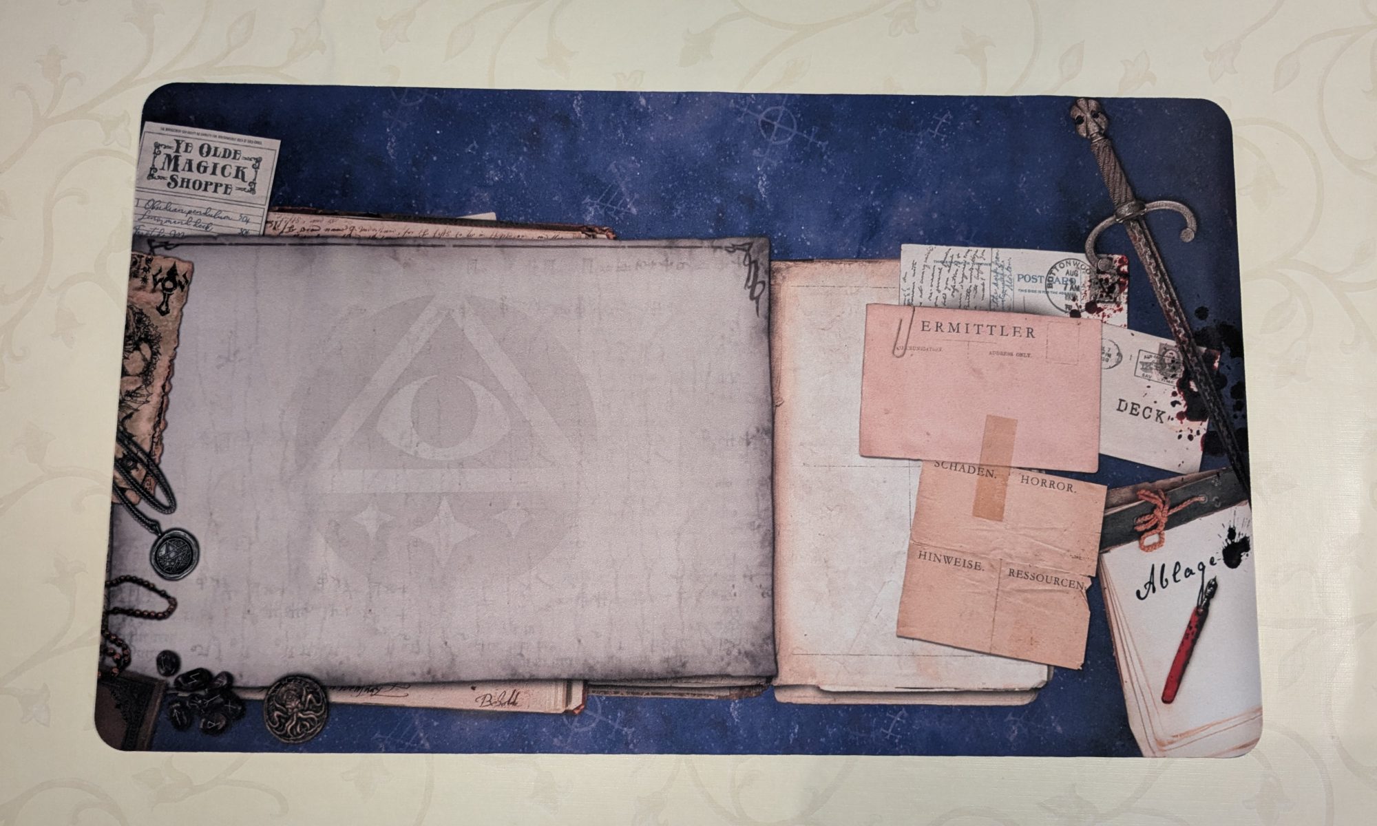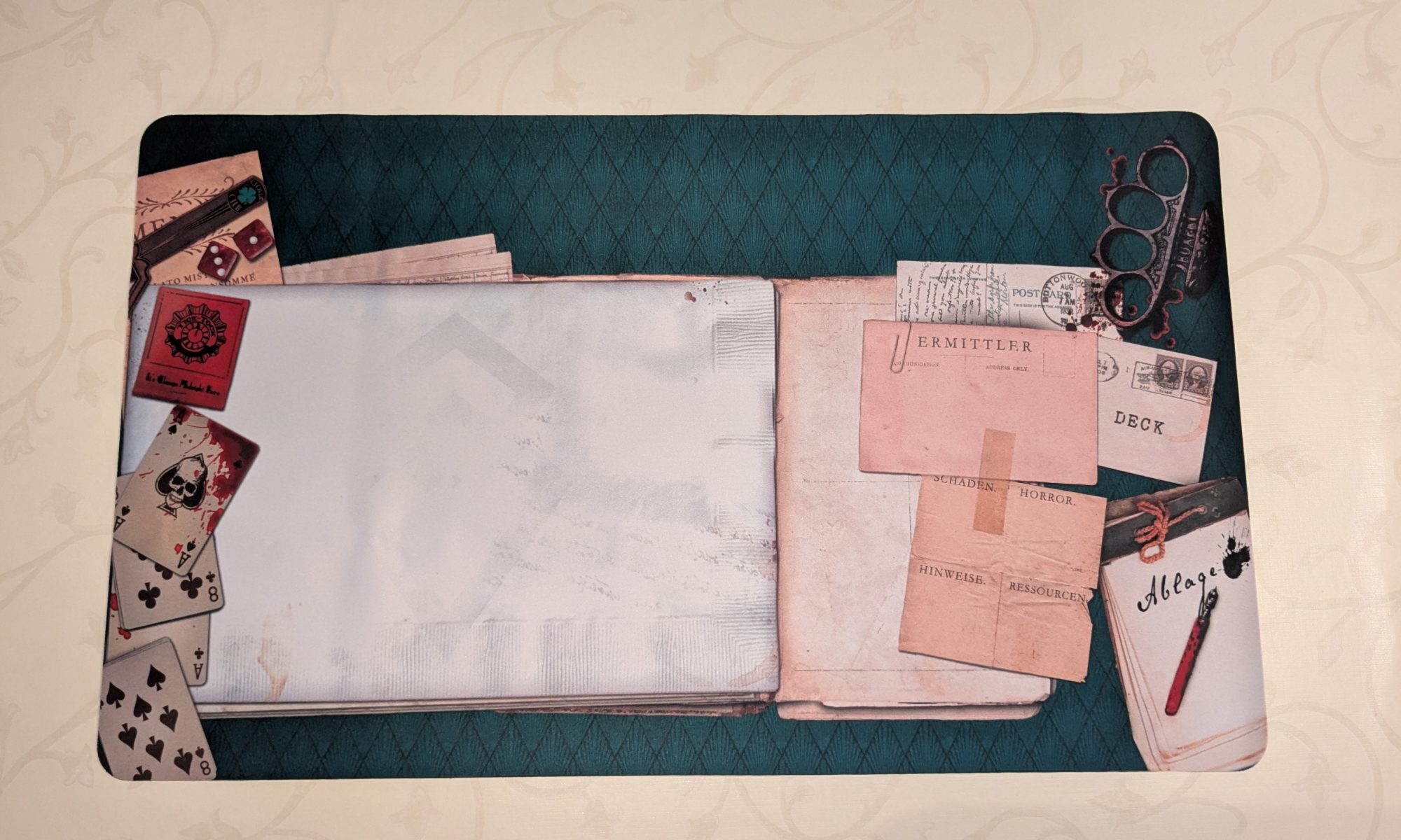 Double sided play mat designed together with Antimarkovnikov using the wonderful art by Francesca Baerald from The Feast of Hemock Vale campaign.