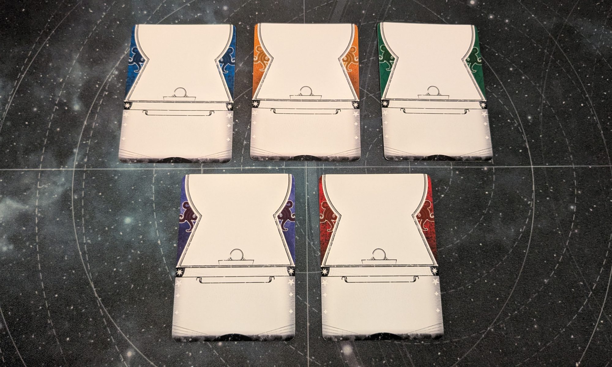 I was fortunate to work with Mint Tea Fan on their great Cosmic Pantheon expansion for the War of the Outer Gods. This expansion introduced 3 new faction for whom I created distinct art templates for all cards. This was one on my biggest projects so far, and one of the most interesting ones as well. Many thanks to Mint Tea Fan for this.